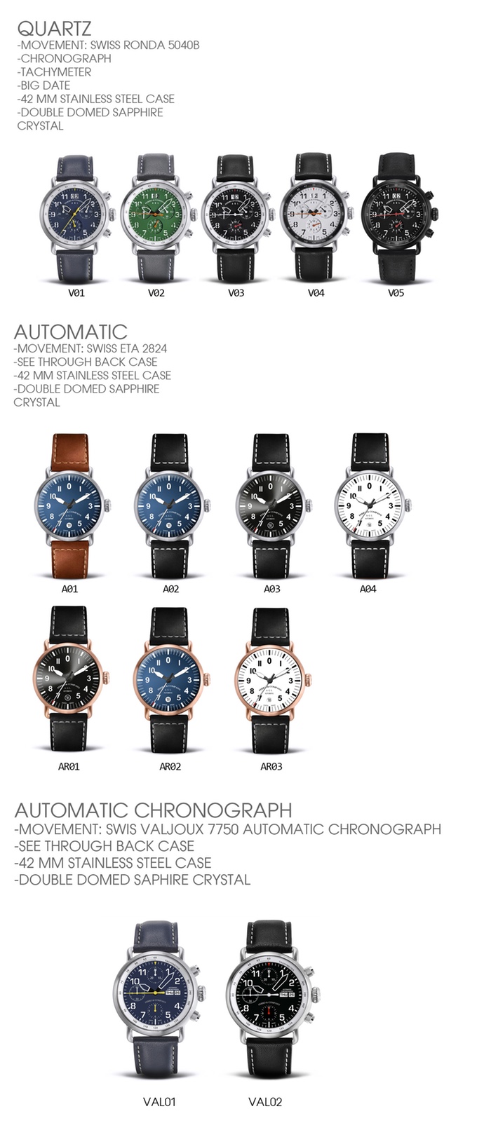Chacune d’elle est livrée sur un bracelet en cuir véritable italien, un verre en saphir à double dôme, et un boitier en acier 316L en acier inoxydable 316L.