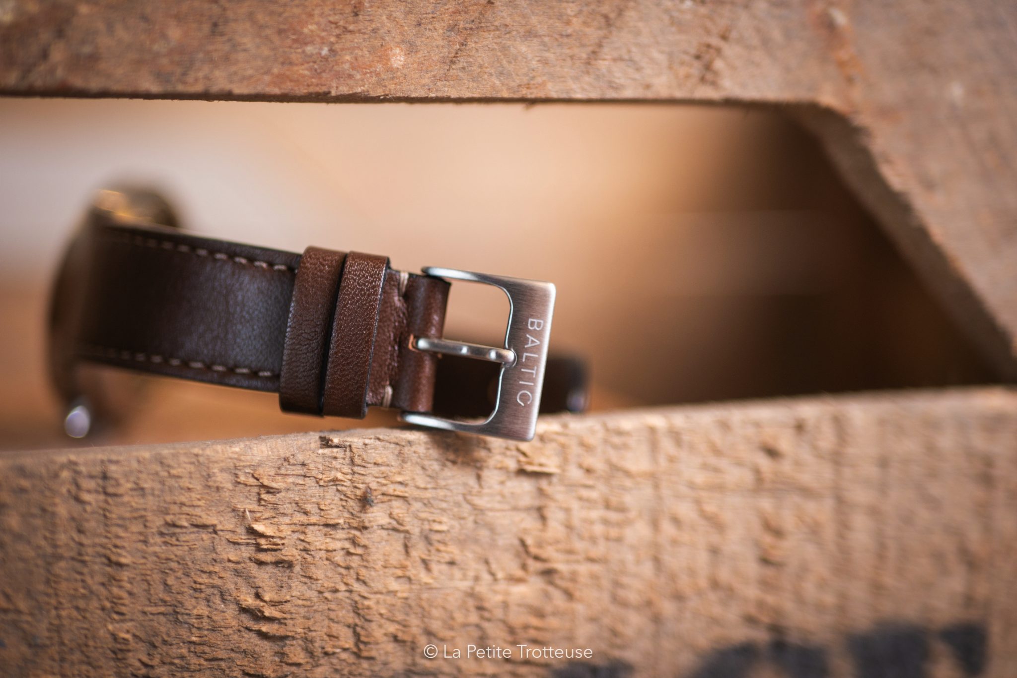 La boucle ardillon en acier est plutôt classique et le logo Baltic qui y est gravé est le bienvenu.